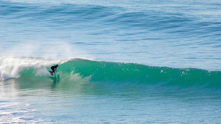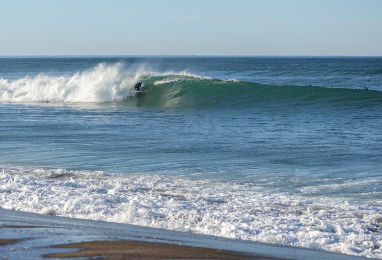 Long left: A wave that breaks toward the left from the vantage point of a surfer riding the wave. Onlookers from the beach facing the ocean will view the wave breaking to the right.