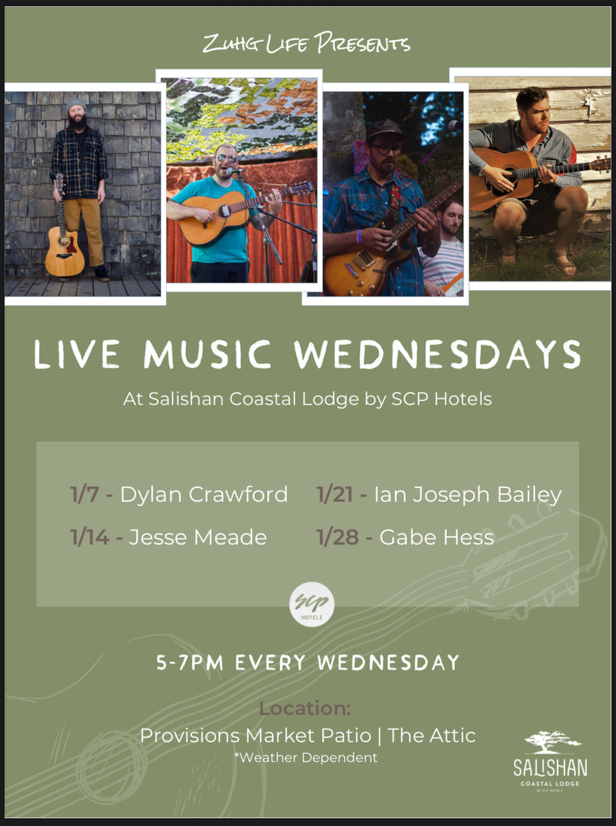 Come enjoy Wednesday musicians at The Attic Lounge (@ Salishan Coastal Lodge) from 5:00-7:00pm.