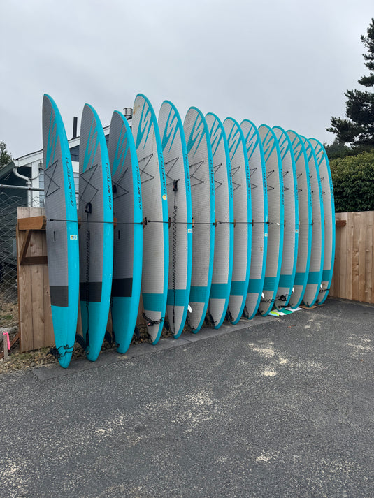 We paddleboard on Siletz Bay at high tide. Our Surf Shop is walking distance to the bay. If you'd like to explore other locations, that is also an option.